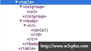 一個擁有4個列的表格在每一行都會有4個<col>元素: