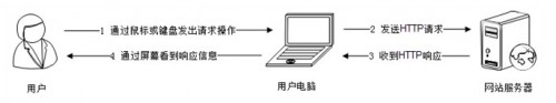 從用戶角度,網(wǎng)站性能就是用戶在瀏覽器上直觀感受到的網(wǎng)站響應速度快還是慢。用戶感受到的時間,包括用戶計算機和網(wǎng)站服務器通信的時間、網(wǎng)站服務器處理的時間、用戶計算機瀏覽器構(gòu)造請求解析響應數(shù)據(jù)的時間,如圖1所示。