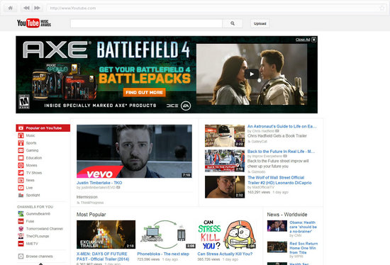 一些網(wǎng)站在安放廣告的位置仍保持著傳統(tǒng)的風(fēng)格。如在Youtube中,將廣告區(qū)域劃分為三種類型,其中一種為“商業(yè)廣告”??傮w來說,所有風(fēng)格的廣告看起來更像TV。它們通常放置在視頻區(qū)域中,很容易吸引用戶的注意力。