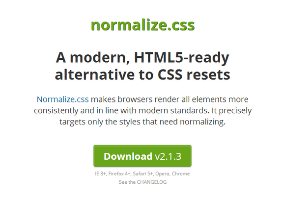 Normalize.css 是一個(gè)可定制的 CSS 文件,使瀏覽器呈現(xiàn)的所有元素,更一致和符合現(xiàn)代標(biāo)準(zhǔn)。它正是針對(duì)只需要統(tǒng)一的元素樣式。該項(xiàng)目依賴(lài)于研究瀏覽器默認(rèn)元素風(fēng)格之間的差異,精確定位需要重置的樣式。這是一個(gè)現(xiàn)代的,HTML5-ready 的 CSS 重置樣式集。