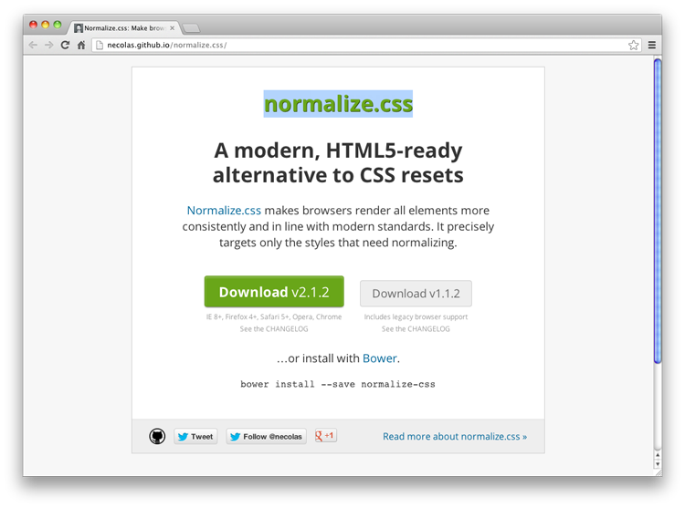 Normalize.css 是用于 HTML5 的 CSS 重置樣式,它使瀏覽器呈現(xiàn)的所有元素更一致和符合現(xiàn)代標(biāo)準(zhǔn)。它被用于許多流行的網(wǎng)站,如 Twitter Bootstrap, Soundcloud, TweetDeck 等等。更多信息: http://necolas.github.io/normalize.css/