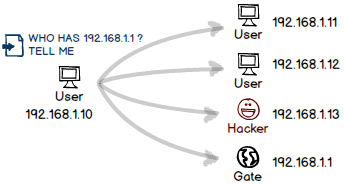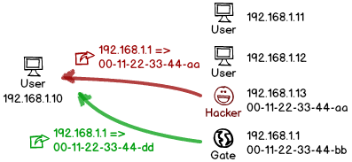 這種攻擊大家?guī)缀醵悸牫隼侠O了,即使不懂電腦的人也知道裝個 ARP 防火墻保平安,其危害之大可想而知。