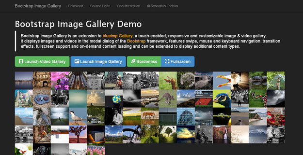 Bootstrap Image Gallery 是blueimp Gallery 的擴(kuò)展, 一個(gè)支持觸屏,響應(yīng)式和可定制的圖片和圖片庫。它用來顯示顯示的圖像和視頻,使用了Bootstrap框架的模態(tài)對(duì)話框,支持滑動(dòng)功能,鼠標(biāo)和鍵盤導(dǎo)航,過渡效果,全屏支持和按需加載內(nèi)容 , 并且可以擴(kuò)展到顯示額外內(nèi)容類型。