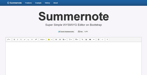 Summernote是一個(gè)建立在jQuery和Bootstrap之上的簡單,簡潔和靈活的所見即所得編輯器。同時(shí)支持Bootstrap的2個(gè)活躍版本(2和3),并為所有主要操作配備鍵盤快捷鍵。功能強(qiáng)大的API,提供了大量的自定義設(shè)計(jì)的選項(xiàng)(寬,高,活躍項(xiàng)......)和功能。