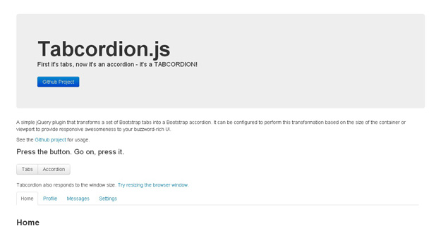 一個(gè)簡單的jQuery插件,它把一組Bootstrap 的選項(xiàng)卡成Bootstrap 風(fēng)琴折疊。它可以配置運(yùn)行容器或視窗的大小轉(zhuǎn)變,來提供響應(yīng)式的很贊的時(shí)髦的富UI。