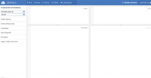 jsFiddle 是一個在線的shell編輯器,通過流行的JS框架創(chuàng)建自定義的環(huán)境,以簡化JS代碼??梢杂糜跍y試示例代碼。不僅如此,你還可以添加一個Ajax echo后端,并且通過一系列的JavaScript框架自動載入資源,如MooTools, jQuery, Dojo, Prototype, YUI, Glow,Vanilla等。還有一個重要特性就是能夠保存和分享一個unique URL generated代碼,jsFiddle還有一個嵌入的功能。