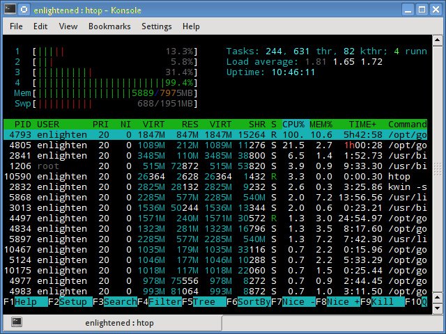 這是最能得到你喜愛的命令行工具。它的功能和top相似,但是更加精致并且多一個漂亮的系統(tǒng)負載界面。它的安裝并不是默認的,但是在Ubuntu和Fedora這樣的發(fā)行版套件上則默認可用。