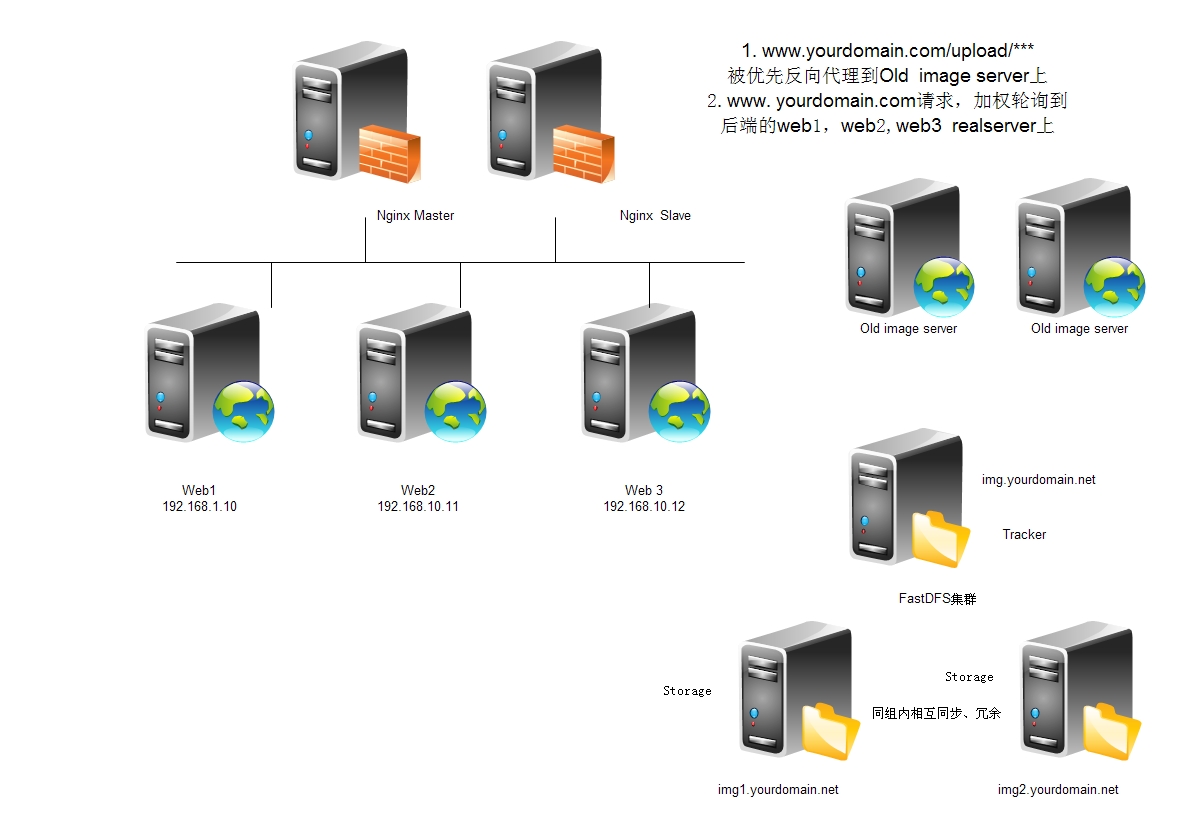 首先,關(guān)閉舊版本上傳入口(避免繼續(xù)使用導(dǎo)致數(shù)據(jù)不一致)。將舊圖片數(shù)據(jù)通過rsync工具一次性遷移到獨(dú)立的圖片服務(wù)器上(即下圖中描述的Old Image Server)。在最前端(七層代理,如Haproxy、Nginx)用ACL(訪問規(guī)則控制),將舊圖片對(duì)應(yīng)URL規(guī)則的請(qǐng)求(正則)匹配到,然后將請(qǐng)求直接轉(zhuǎn)發(fā)指定的web 服務(wù)器列表,在該列表中的服務(wù)器上配置好提供圖片(以Web方式)訪問的站點(diǎn),并加入緩存策略。這樣實(shí)現(xiàn)舊圖片服務(wù)器的分離和緩存,兼容了舊圖片的訪問規(guī)則并提升舊圖片訪問效率,也避免了實(shí)時(shí)同步所帶來的問題。
