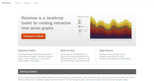 Rickshaw 是一個(gè)用于繪制時(shí)序圖的簡(jiǎn)單 jS 庫(kù),基于 Mike Bostock’s delightful D3 庫(kù)構(gòu)建。