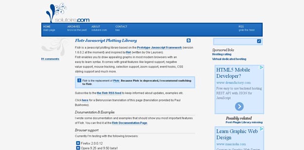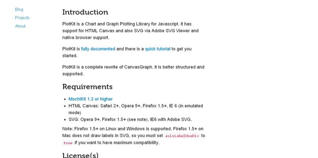 PlotKit 是一個(gè)純 javascript 繪圖工具包。它支持 HTML Canvas 和 Adobe SVG。有著很完整的文檔,方便用戶使用。