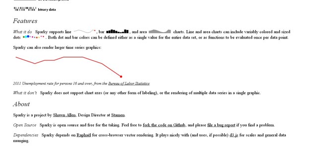 Sparky 是個(gè)免費(fèi)的 JavaScript 波形圖庫(kù),依賴于 Raphaël ,非常容易使用。支持多個(gè)圖表類型(折線,條形,area),折線和區(qū)域圖可以有多個(gè)顏色選擇。