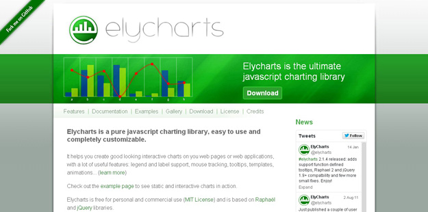 Elycharts 是一個(gè)易于使用的,可定制的JavaScript圖表繪制組件。這個(gè)組件可用于繪制大部分常用的圖表類型包括:line, column, are, bar, pie, sparklines and combinations。它支持多種交互式功能包括:鼠標(biāo)跟蹤、事件處理、利用各種動(dòng)畫高亮顯示選擇中的區(qū)域,Tooltip,HTML錨點(diǎn)等??梢詣?dòng) 態(tài)修改數(shù)據(jù),并以漂亮的動(dòng)畫效果展示圖表中的變化。圖表利用SVG/VML技術(shù)生成,基于jQuery + Rapha?l開發(fā)。