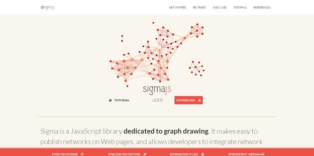 Sigma.js 是個(gè)免費(fèi)開源的 JavaScript 圖形庫(kù),使用 HTML5 canvas 元素。它的設(shè)計(jì)是特別為了在 web 界面分享交互式網(wǎng)絡(luò) Map 和動(dòng)態(tài)展示網(wǎng)絡(luò)數(shù)據(jù)庫(kù)。