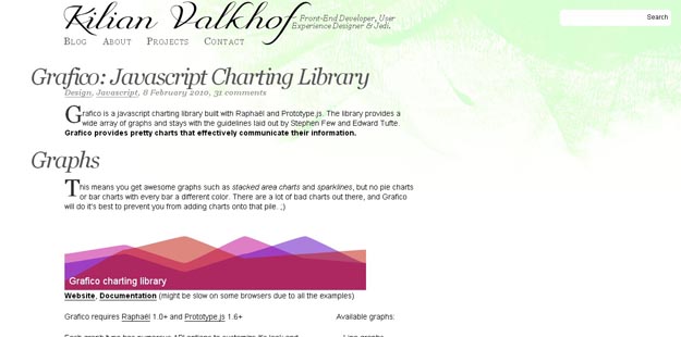 Grafico 是Grafico 是一個(gè)基于 Rapha?l 和 Prototype.js 構(gòu)建的 JavaScript 圖表庫(kù),提供了各種圖表類型。這些漂亮的圖表,有利于傳遞他們的信息。