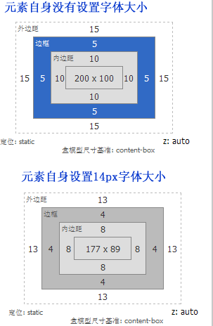 那么元素設(shè)置了字體大小,此元素的其他屬性,如“border、width、height、padding、margin、line-height”計(jì)算就需要按照下面的公式來計(jì)算: