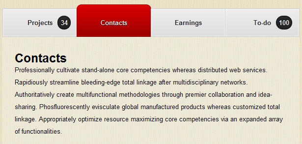 這款jQuery tab菜單外觀還算精致,tab切換時有漸顯漸隱的效果,tab菜單的內(nèi)容高度自適應。