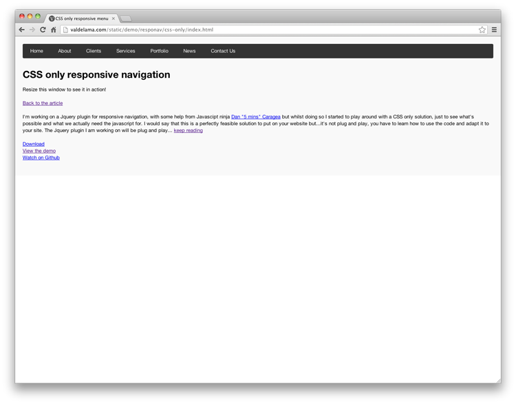 響應(yīng)式的布局,現(xiàn)在在網(wǎng)絡(luò)上很受歡迎,在我看來(lái),這絕對(duì)是一件好事。這里是一個(gè)可下載和可重復(fù)使用的響應(yīng)式 CSS 導(dǎo)航菜單。更多信息: http://valdelama.com/css-responsive-navigation