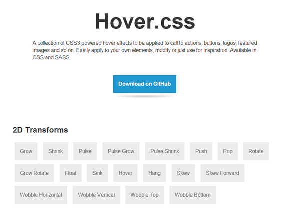 Hover.css 是一套基于 CSS3 的鼠標(biāo)懸停效果和動畫,這些可以非常輕松的被應(yīng)用到按鈕、LOGO 以及圖片等元素。所有這些效果都是只需要單一的標(biāo)簽,必要的時候使用 before 和 after 偽元素。因為使用了 CSS3 過渡、轉(zhuǎn)換和動畫效果,因此只支持 Chrome、Firefox 和 Safari 等現(xiàn)代瀏覽器。