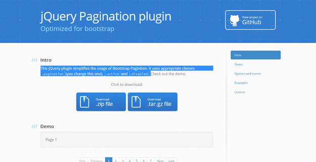 這個(gè)jQuery插件可以簡化Bootstrap分頁的使用。它使用相應(yīng)的類:.pagination(更改這個(gè)),.active 和 .disabled.