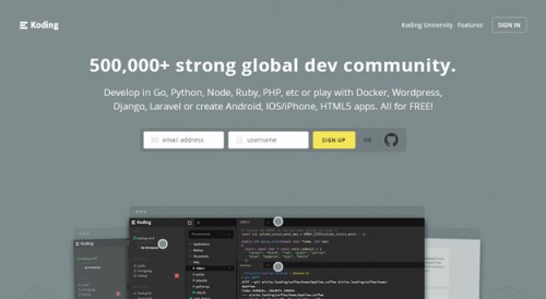 koding 是一個免費的,功能齊全的云開發(fā)環(huán)境,創(chuàng)建和編輯代碼非常方便。它提供了一些不錯的協(xié)作工具。注冊后你可以得到一個免費的虛擬機,協(xié)助你的開發(fā)旅程。