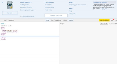 JSBin 是一個 Web 應用,主要用于幫助測試 JavaScript 和 CSS 的代碼片段。JSBin與允許你編輯和測試JavaScript 及 HTML,你可以隨時保存,并將URL發(fā)送給同行審查或獲取幫助,他們可以對內(nèi)容進一步修改并重新保存。