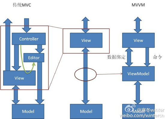 所以時至今日,MVC,尤其是其中Controller的功能已經(jīng)意義不大,若是在控件系統(tǒng)中,再令所有用戶輸入流經(jīng)一個Controller則可謂不倫不類、本末倒置。MVVM的提出者,微軟架構(gòu)師John Gossman曾言:“我傾向于認(rèn)為它(指Controller)只是隱藏到后臺了,它仍然存在,但是我們不需要像是1979年那樣考慮那么多事情了”