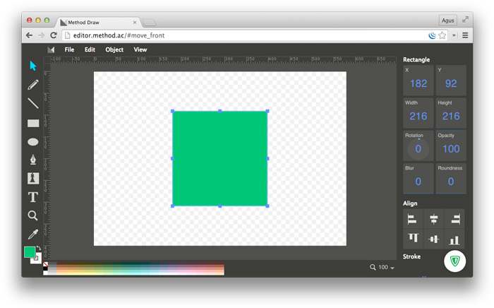 Method draw 是一個(gè)基于 web 的 SVG 編輯器,帶有一個(gè)兩邊伴有工具的畫布的直觀的界面。你可以畫線條,形狀,輸入文本或者使用內(nèi)置的形狀,然后編輯繪畫兌現(xiàn)的屬性。使用 SVG 格式導(dǎo)出圖像(也可以變成 SVG base64 格式)或者直接使用 PNG 保存。