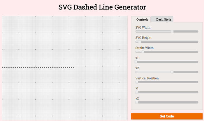 這是一個(gè)使用 SVG stroke-dasharray 生成虛線的簡(jiǎn)單工具。首先選擇從列表中選擇一個(gè)虛線類型,然后在寬度,高度,旋轉(zhuǎn)或顏色方便自定義虛線。然后你可以攫取 HTML 代碼和 CSS 應(yīng)用這條虛線到你的項(xiàng)目中。