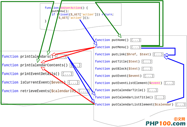 這里有一項(xiàng)名為doUserAction()的函數(shù),它的生效與否取決于一條很長(zhǎng)的if-else聲明;其它方法則根據(jù)GET變量中的參數(shù)決定調(diào)用情況。這些方法隨后利用API與谷歌日程表對(duì)接,并在屏幕上顯示出我們需要的任何結(jié)果。