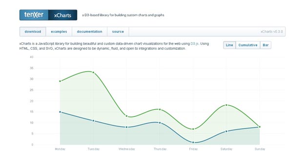 xCharts 是一個(gè)使用 D3.js 來構(gòu)建漂亮的可定制的數(shù)據(jù)驅(qū)動(dòng)的 JavaScript 圖表庫(kù),他使用HTML,CSS,SVG實(shí)現(xiàn)圖表,xCharts 被設(shè)計(jì)為一個(gè)動(dòng)態(tài)的、流暢的、開放的和可定制化的庫(kù)。
