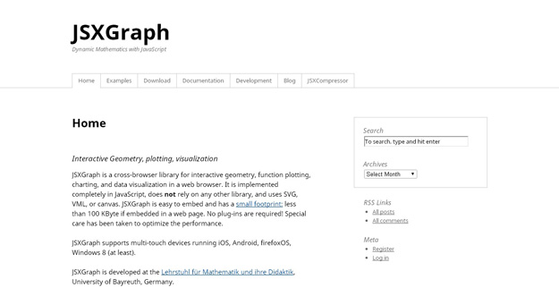 JSXGraph 是一個(gè)支持各種瀏覽器的交互式幾何圖庫(kù)繪制。JSXGraph 使用 SVG 和 VML.