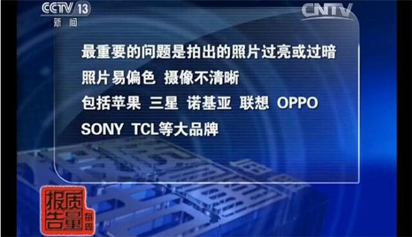 很有趣的是,還是在昨天,央視曝光稱:國(guó)家照相機(jī)質(zhì)量監(jiān)督檢驗(yàn)中心對(duì)十幾種手機(jī)拍攝性能進(jìn)行測(cè)試:iPhone6、諾基亞Lumia 930、OPPO R5等多款手機(jī)拍照攝像成像性能不合格。